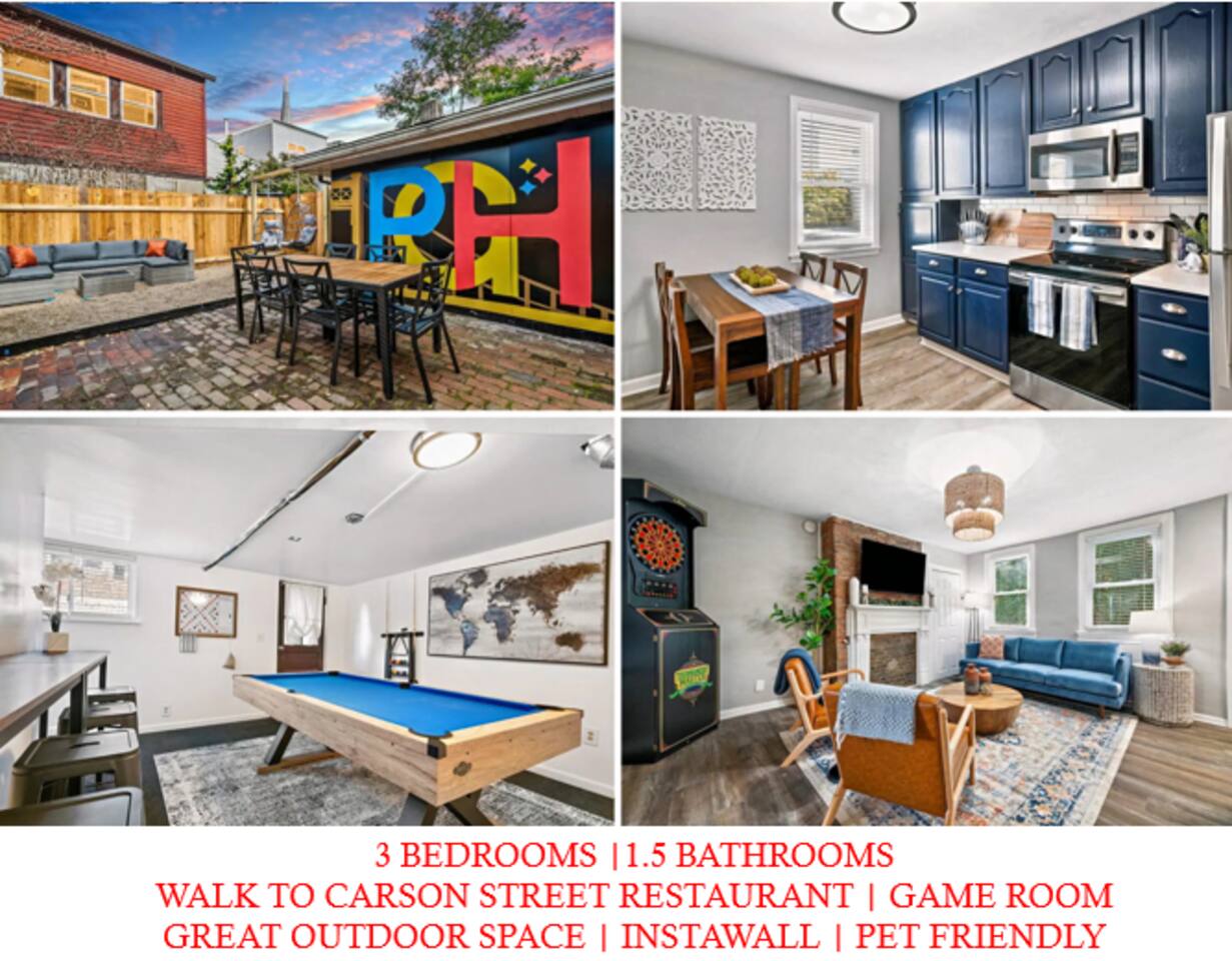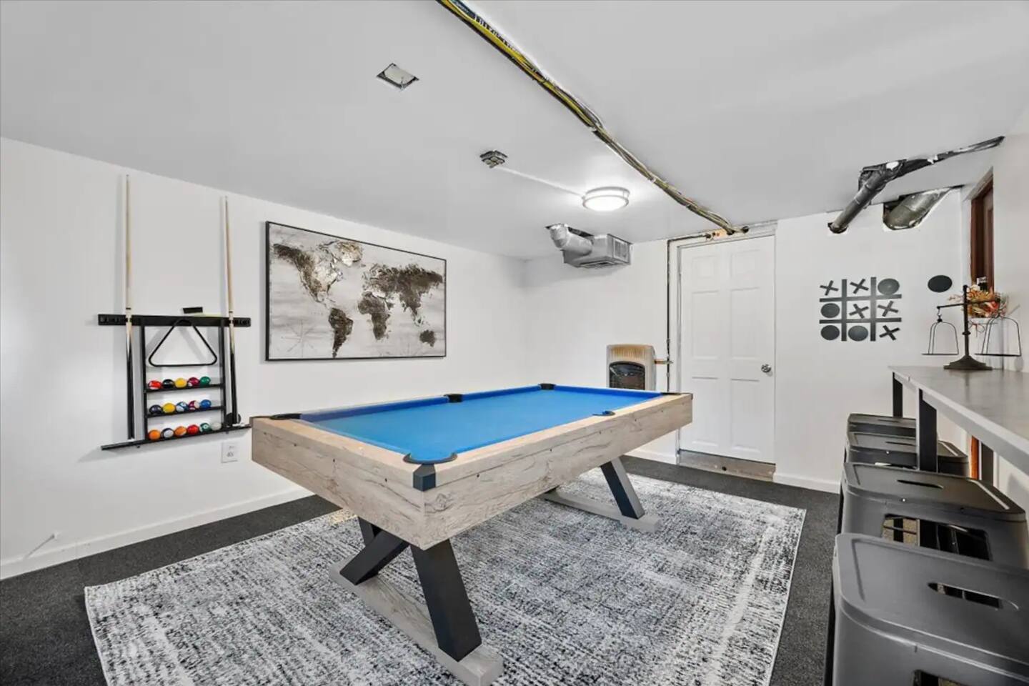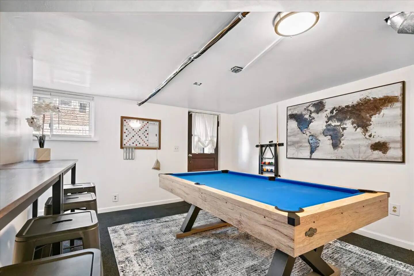 KEY FEATURES: ☀ 3 bedrooms; 1 king, 1 queen, 2 twins ☀ 1.5 full bathrooms; 1 bathroom w/ bathtub + shower combo ☀ Country-charm kitchen w/ modern appliances + coffee bar ☀ Cozy living room w/ a large flat-screen TV + magnetic dart board ☀ Fun game room w/ a pool table + games ☀ Private, fenced yard w/ custom Pittsburgh mural, outdoor furniture + swinging hammock chairs ☀ Washer + dryer ☀ Large flat-screen smart TVs in each bedroom + living space ☀ High-speed internet throughout ☀ Dedicated work space w/ a desk ☀ Air conditioning + heating ☀ Security cameras for your peace of mind ☀ On-site parking ☀ Pet-friendly ☆☆ BEDROOMS ☆☆ Three elegant bedrooms are waiting to welcome you at the end of each day. Each room features a comfortable bed and a Roku-enabled smart TV, making them the perfect place to unwind after a day of exploring the city. Two of the bedrooms are on the second floor. The main bedroom offers a comfy king-sized bed, while the second bedroom has a queen-sized bed. Gorgeous full-length mirrors adorn each room, so you’ll be confident that you’re looking your best for a night out. On the third floor, you’ll find a cozy loft bedroom, complete with two full beds. A dedicated desk with high-speed internet is also available, so you’ll be able to take care of any work needs in peace and comfort during your stay. ☆☆ BATHROOMS ☆☆ A stylish modern bathroom with a full bath and shower combo is available for your use on the second floor, offering you the choice of a lingering soak in the tub or a refreshing shower. Dual vanities make it easy for multiple people to get ready in the morning! You’ll also find a half bath conveniently located on the first floor. The bathrooms are stocked with fresh towels and essential toiletries for your convenience. ☆☆ KITCHEN & DINING ☆☆ The fully-equipped, open-concept kitchen and dining area ooze the original charm of this historic home, while also incorporating modern touches. The stylish kitchen is equipped with stainless steel appliances and all the cookware, dishware, and utensils you need to cook delicious meals with friends or family during your stay. Caffeine lovers will be delighted to find a coffee bar complete with a Keurig coffee maker! Start every day off right with a cup of coffee, just the way you like it! ☆☆ LIVING ROOM ☆☆ After a day of seeing Pittsburgh’s sights, you’ll want a comfortable living space to kick back and relax and this gorgeous living room does not disappoint! Exposed brick and carefully-chosen furniture and decor make this an inviting backdrop for quality time with your group. Chill out on the large, comfy sofa while enjoying a little screen time on the smart TV. If you want to liven things up a bit, you’ll find a magnetic dart board waiting to inspire some friendly competition! ☆☆GAMEROOM ☆☆ For more entertainment, venture down to our basement to enjoy some fun games in the game room. This room has been carefully designed with two things in mind: rest and recreation! You’ll find a cozy bar with bar stools, where you’ll be able to enjoy your favorite beverages while having some well-deserved fun! The game room features a full-sized pool table, tic tac toe, and Scrabble. ☆☆ OUTDOOR SPACE ☆☆ Make the most of the wonderful outdoor space, which features a stunning, custom Pittsburgh Mural, an outdoor dining area, and plenty of comfortable seating for you to relax in. Here you can listen to the wind rustling through the leaves as you gently sway on the custom-built swings or enjoy conversations with your friends and family while lounging on the outdoor furniture. Do as much or as little as you wish – it’s your trip! Note: The back yard is fully fenced but there is a small alley next to the house that is open (and 30 inches wide). This historical home is conveniently located near PNC Park, so it’s the perfect base for game day. It’s also just a short drive away from the delights of Station Square, Pittsburgh Zoo, and the Rivers Casino, so you’ll never be short of things to do during your stay. ★☆ Book Today & Let Us Take Care Of You In Pittsburgh! ☆★