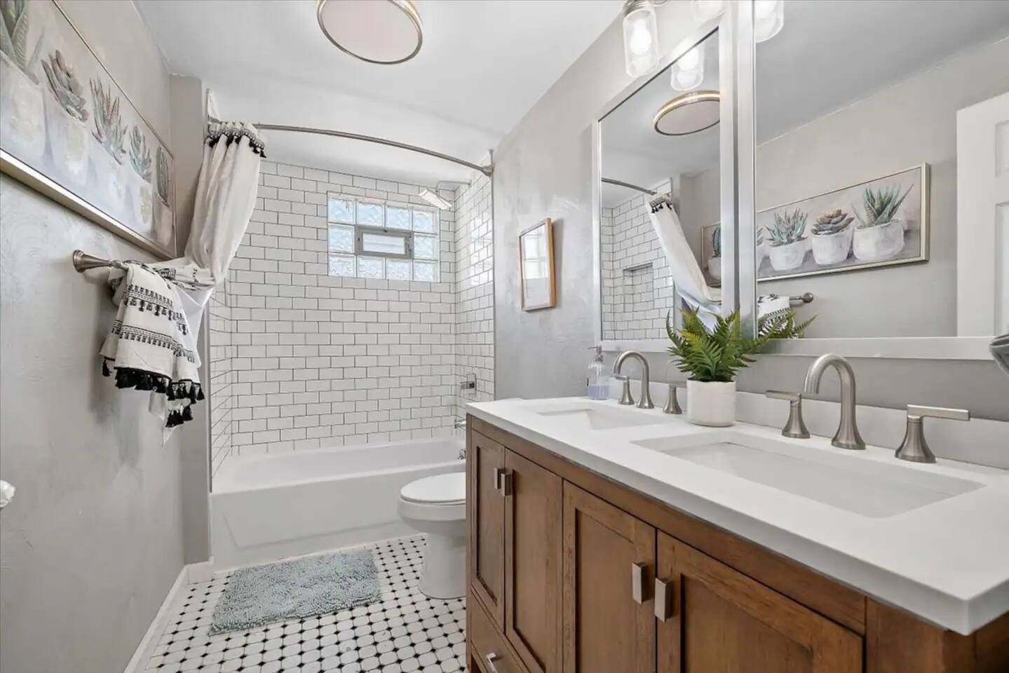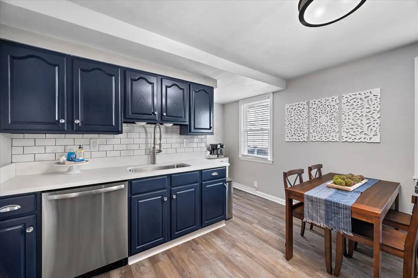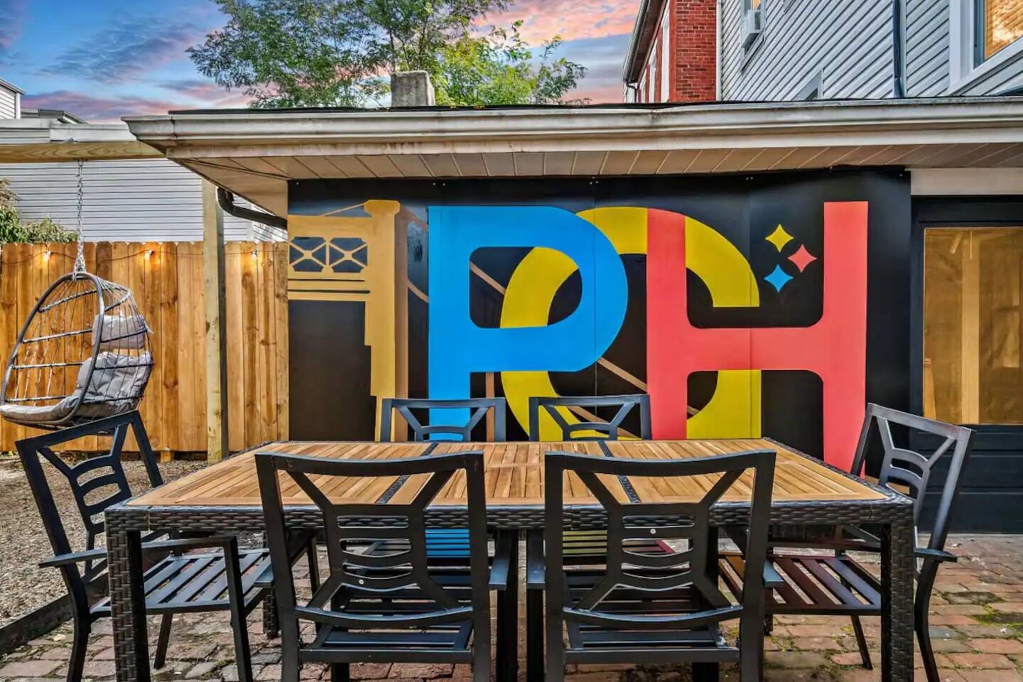 KEY FEATURES: ☀ 3 bedrooms; 1 king, 1 queen, 2 twins ☀ 1.5 full bathrooms; 1 bathroom w/ bathtub + shower combo ☀ Country-charm kitchen w/ modern appliances + coffee bar ☀ Cozy living room w/ a large flat-screen TV + magnetic dart board ☀ Fun game room w/ a pool table + games ☀ Private, fenced yard w/ custom Pittsburgh mural, outdoor furniture + swinging hammock chairs ☀ Washer + dryer ☀ Large flat-screen smart TVs in each bedroom + living space ☀ High-speed internet throughout ☀ Dedicated work space w/ a desk ☀ Air conditioning + heating ☀ Security cameras for your peace of mind ☀ On-site parking ☀ Pet-friendly ☆☆ BEDROOMS ☆☆ Three elegant bedrooms are waiting to welcome you at the end of each day. Each room features a comfortable bed and a Roku-enabled smart TV, making them the perfect place to unwind after a day of exploring the city. Two of the bedrooms are on the second floor. The main bedroom offers a comfy king-sized bed, while the second bedroom has a queen-sized bed. Gorgeous full-length mirrors adorn each room, so you’ll be confident that you’re looking your best for a night out. On the third floor, you’ll find a cozy loft bedroom, complete with two full beds. A dedicated desk with high-speed internet is also available, so you’ll be able to take care of any work needs in peace and comfort during your stay. ☆☆ BATHROOMS ☆☆ A stylish modern bathroom with a full bath and shower combo is available for your use on the second floor, offering you the choice of a lingering soak in the tub or a refreshing shower. Dual vanities make it easy for multiple people to get ready in the morning! You’ll also find a half bath conveniently located on the first floor. The bathrooms are stocked with fresh towels and essential toiletries for your convenience. ☆☆ KITCHEN & DINING ☆☆ The fully-equipped, open-concept kitchen and dining area ooze the original charm of this historic home, while also incorporating modern touches. The stylish kitchen is equipped with stainless steel appliances and all the cookware, dishware, and utensils you need to cook delicious meals with friends or family during your stay. Caffeine lovers will be delighted to find a coffee bar complete with a Keurig coffee maker! Start every day off right with a cup of coffee, just the way you like it! ☆☆ LIVING ROOM ☆☆ After a day of seeing Pittsburgh’s sights, you’ll want a comfortable living space to kick back and relax and this gorgeous living room does not disappoint! Exposed brick and carefully-chosen furniture and decor make this an inviting backdrop for quality time with your group. Chill out on the large, comfy sofa while enjoying a little screen time on the smart TV. If you want to liven things up a bit, you’ll find a magnetic dart board waiting to inspire some friendly competition! ☆☆GAMEROOM ☆☆ For more entertainment, venture down to our basement to enjoy some fun games in the game room. This room has been carefully designed with two things in mind: rest and recreation! You’ll find a cozy bar with bar stools, where you’ll be able to enjoy your favorite beverages while having some well-deserved fun! The game room features a full-sized pool table, tic tac toe, and Scrabble. ☆☆ OUTDOOR SPACE ☆☆ Make the most of the wonderful outdoor space, which features a stunning, custom Pittsburgh Mural, an outdoor dining area, and plenty of comfortable seating for you to relax in. Here you can listen to the wind rustling through the leaves as you gently sway on the custom-built swings or enjoy conversations with your friends and family while lounging on the outdoor furniture. Do as much or as little as you wish – it’s your trip! Note: The back yard is fully fenced but there is a small alley next to the house that is open (and 30 inches wide). This historical home is conveniently located near PNC Park, so it’s the perfect base for game day. It’s also just a short drive away from the delights of Station Square, Pittsburgh Zoo, and the Rivers Casino, so you’ll never be short of things to do during your stay. ★☆ Book Today & Let Us Take Care Of You In Pittsburgh! ☆★