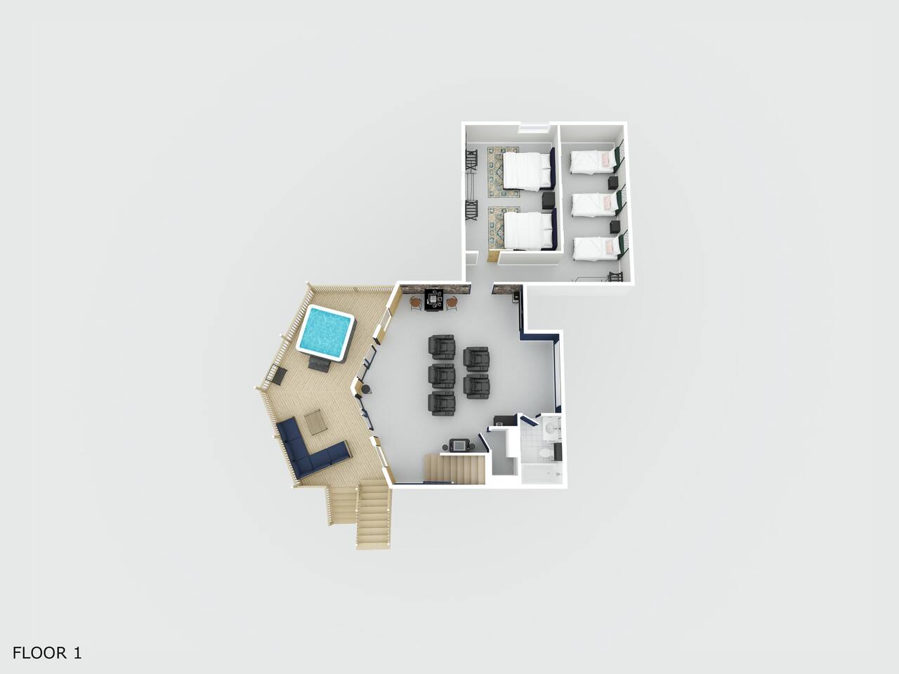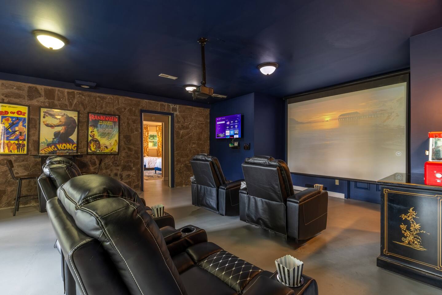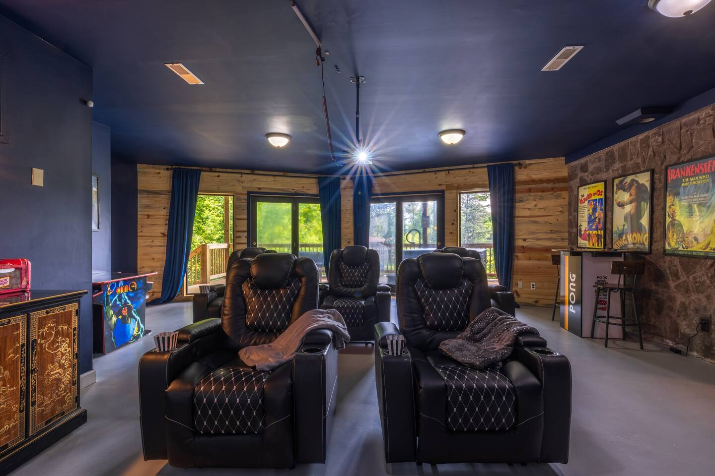 Features & Amenities: ☀ Relaxation & Comfort: • Outdoor Hot Tub - accommodate up to 6 guests. • Private Double Deck - offering stunning lake and mountain views. ☀ Entertainment Galore: • Cinema Room - enjoy films from the comfort of reclining chairs with a popcorn and hot dog machine. • Poker Room - seats 8 players. • Arcade & Board Games - fun for all ages. ☀ Fitness & Wellness: • Fully equipped gym - includes treadmill, yoga mat, and infrared sauna. ☀ Culinary Adventures: • Gourmet Kitchen - completely stocked for all your cooking needs. • Outdoor Dining with BBQ grill - perfect for al fresco meals. ☀ Master Sweet Retreat: • Luxury jet spa for ultimate relaxation. Convenience & Security: • Keyless Entry - receive your personal access code 48 hours before arrival. • Ample Parking 🏠 Secure and Private with two Ring Flood Light cameras for added peace of mind. Important Guest Information: • Guest must be 21+ to book. • Maximum of 13 guests - ensure all persons over 3 years are included in the reservation. • No indoor smoking – permitted only in designated outdoor areas. Your Stay Matters! • Consider travel insurance for flexibility with unforeseen travel plan changes. • Contact us easily through the booking platform or via text. 🔔 Special Reminders: • No Lake Access: The lake is not available for any water activities. • Liability Disclaimer: Guests agree to assume full responsibility for their safety while staying at the property. Plan Your Adventure Today: Click "Save" on this listing to start planning your unforgettable visit!